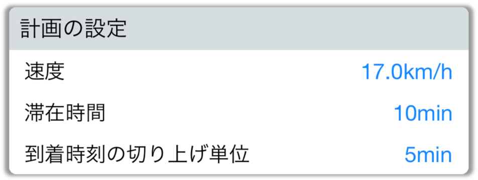 Since it is too detailed to plan the arrival time of Brevet in 1-minute units, the time is rounded up and calculated in "round-up units". "Rounding up unit of arrival time 5 minutes" means that the arrival time is rounded up in 5 minute increments. In this case, the arrival time is 14:42, so this "a little over 2 minutes" part is rounded up and 14:45 is calculated as the arrival time. If the unit of rounding up the arrival time is 10 minutes, the arrival time will be rounded up in 10-minute increments.
